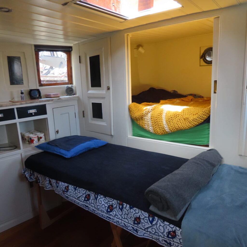 De Reiki-ruimte aan boord van de Alpha bevindt zich benedendeks. Je komt er via een klein trappetje – op de foto’s hieronder zie je precies hoe dat eruitziet. Zo weet je van tevoren wat je kunt verwachten.